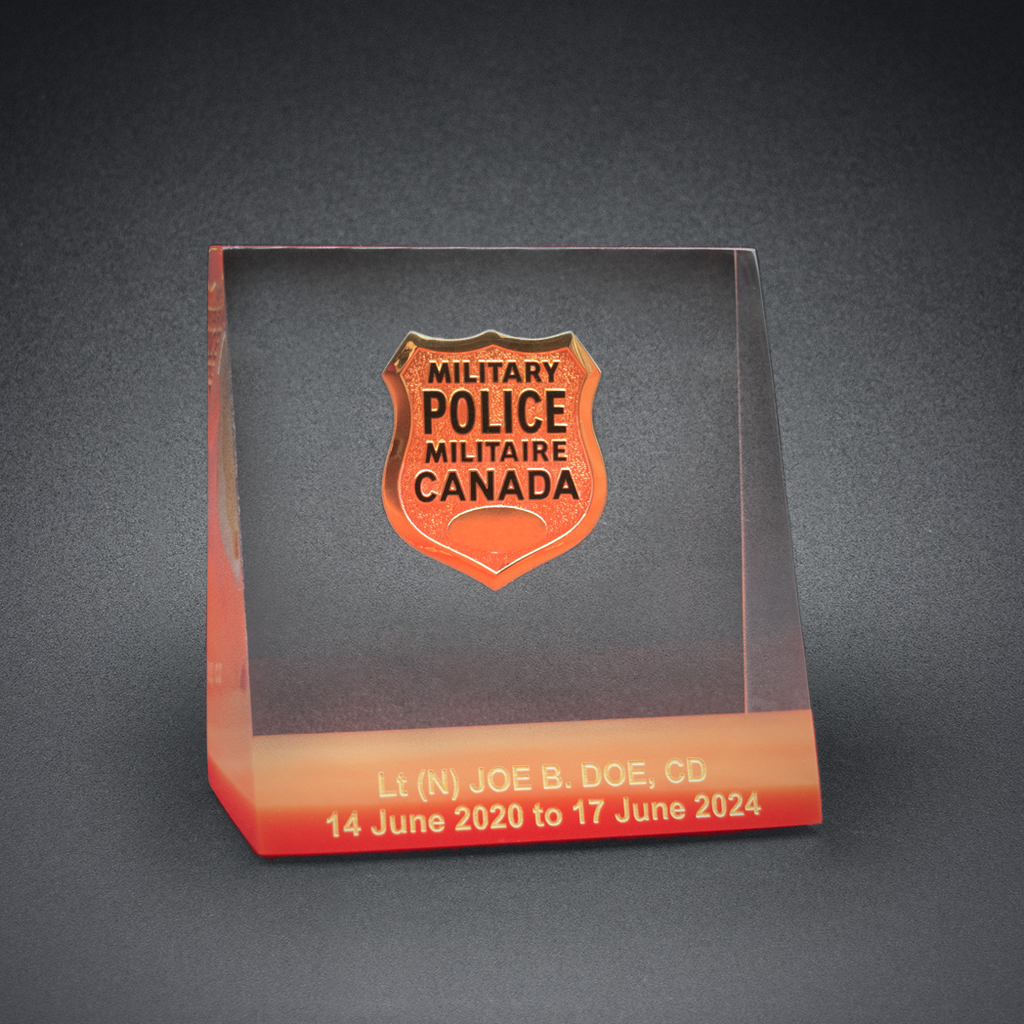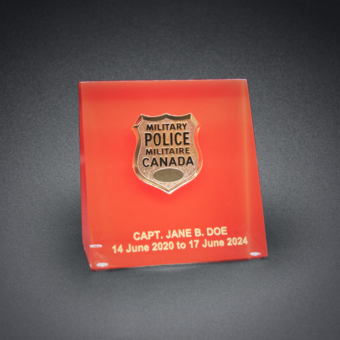 W44C - Upright wedge - Clear with Red Accent Stripe - Gold Lettering