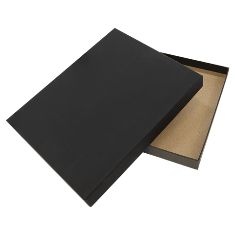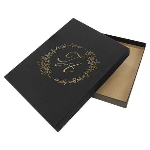 This black presentation box lasers to gold for a stunning high-end look that adds elegance to the recognition award inside. This box will hold a plaque up to 1" thick